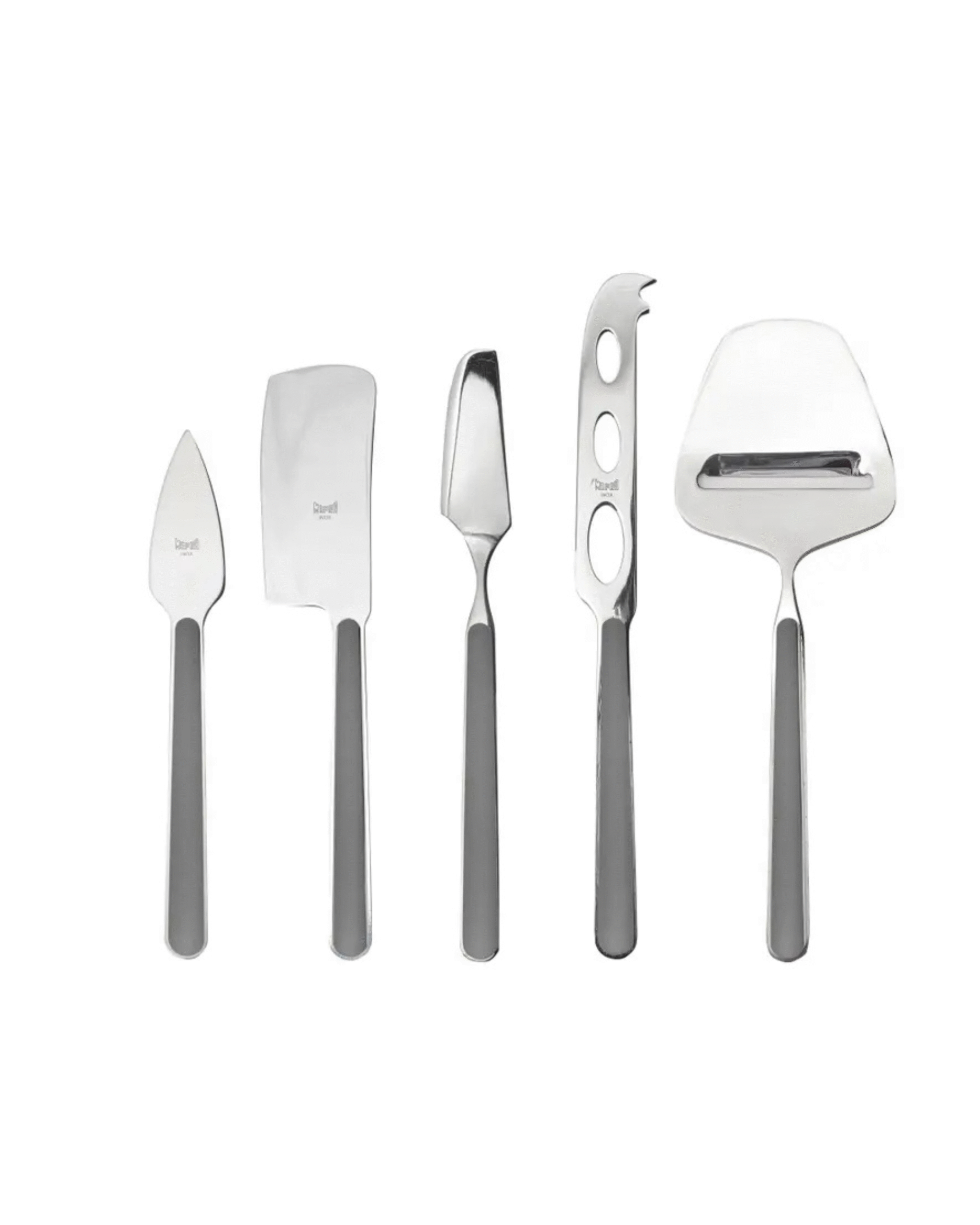 The Fantasia Light Mauve 5-piece Cheese Knife set combines elegant design with functionality. Each knife is crafted for precision and comfort, making cheese slicing and serving effortless and chic.