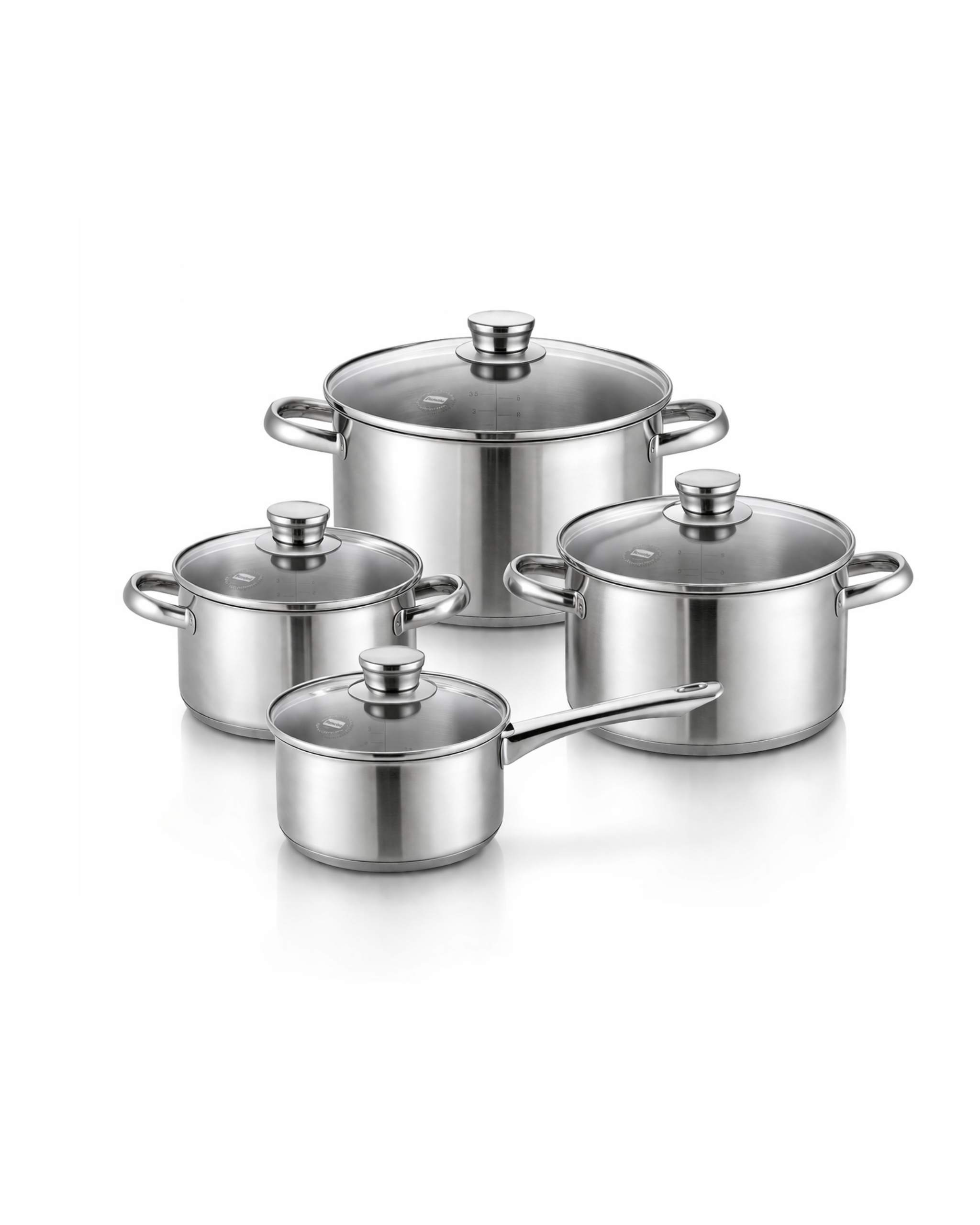 Cook healthier and more efficiently with this premium stainless steel cookware set. Made from high-quality, food-safe stainless steel, it ensures safe cooking and long-lasting durability. The thick capsule base provides fast, even heat distribution for perfect cooking results every time. Designed for comfortable handling with an optimal weight and practical internal measuring scale, it makes cooking easier and more precise. Suitable for all types of stovetops, including induction, this set delivers reliable performance in any kitchen.