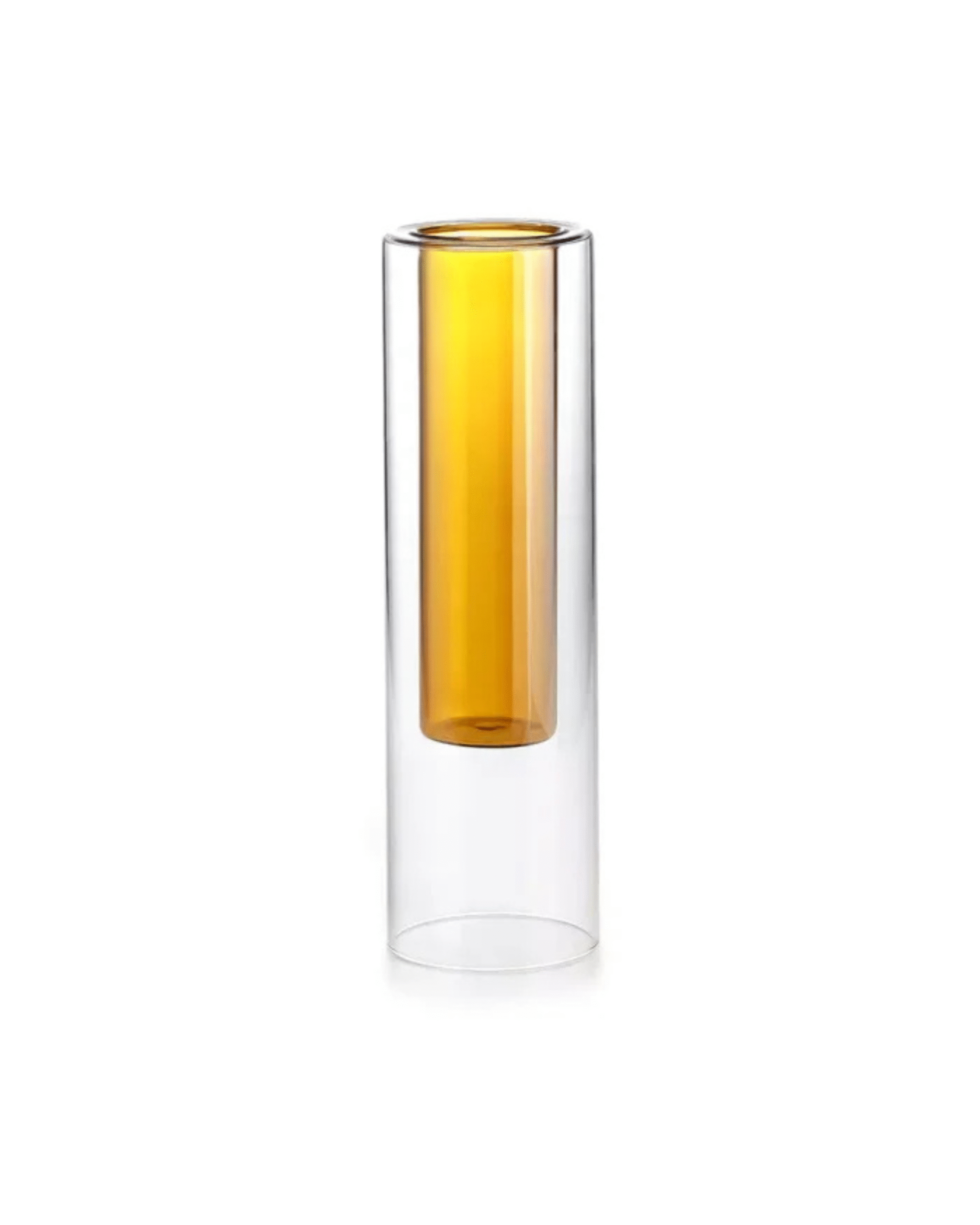 Modern 30 cm amber borosilicate vase with a tubular double-chamber design, perfect for flowers or decorative display.