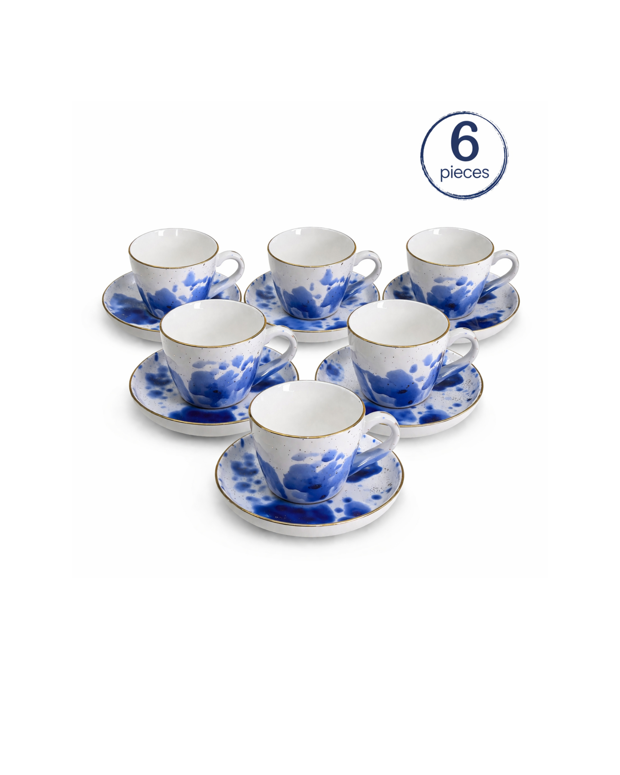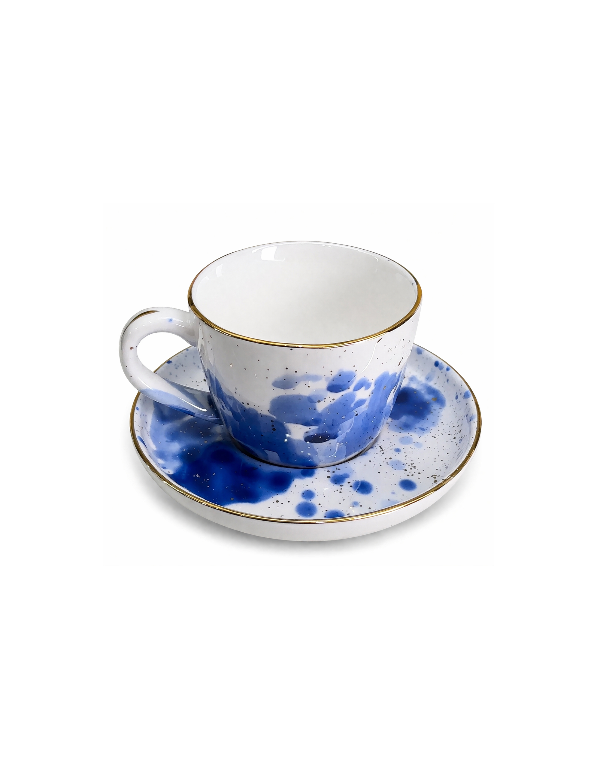 Add a touch of elegance to your coffee moments with this beautifully crafted espresso cup and saucer. Featuring a unique blue splash design combined with a refined gold rim, this set delivers a perfect balance of modern artistry and classic luxury. Made from high-quality ceramic, each piece offers a smooth glossy finish and a comfortable grip, ideal for daily use or special occasions