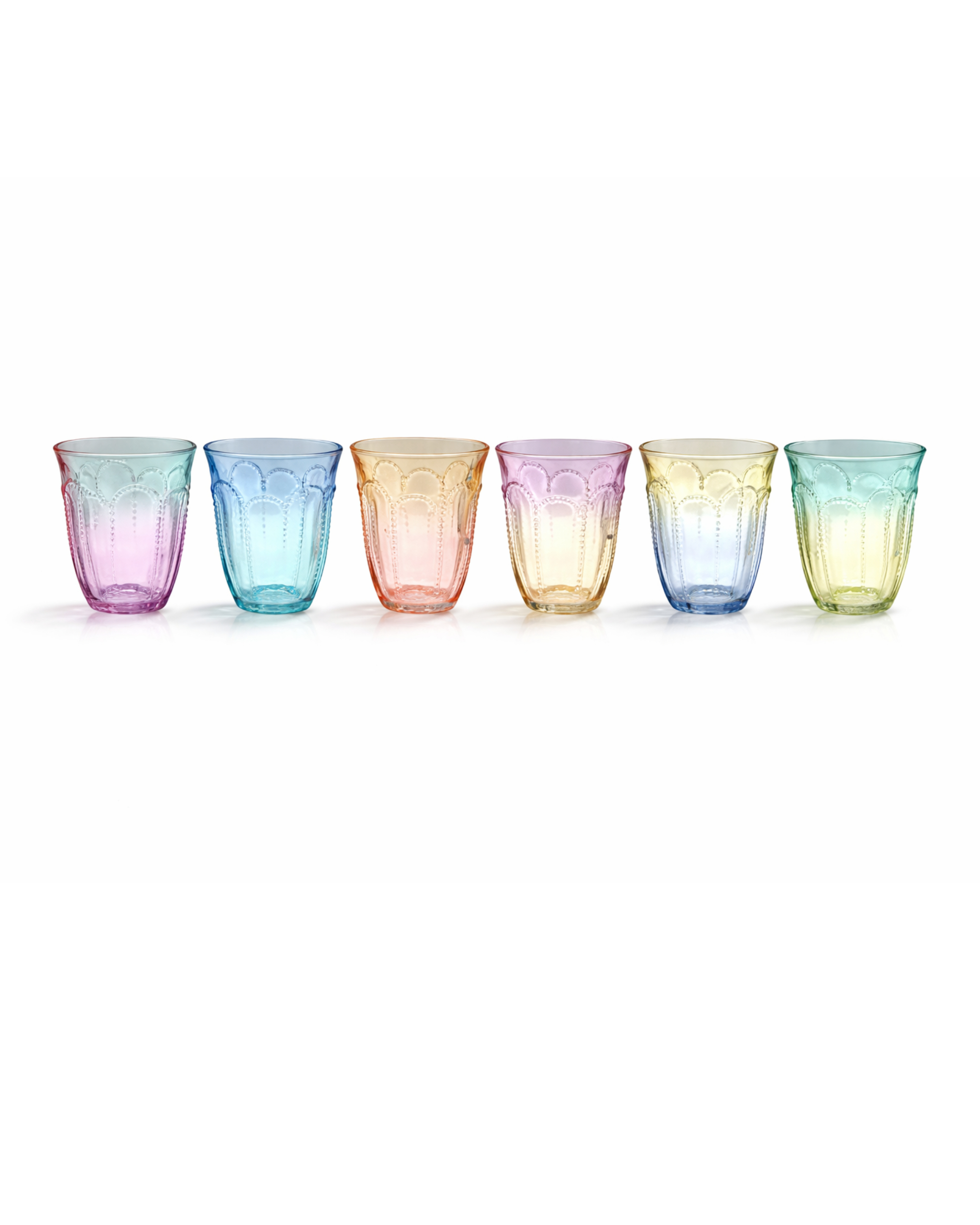 Crafted from high-quality glass (GLAS), the “VIVA COLOR” glasses provide durability and a solid feel, while their brilliant transparency enhances the stunning play of colours. The soft, colourful tones create a lively yet elegant look that complements both modern and casual table settings.