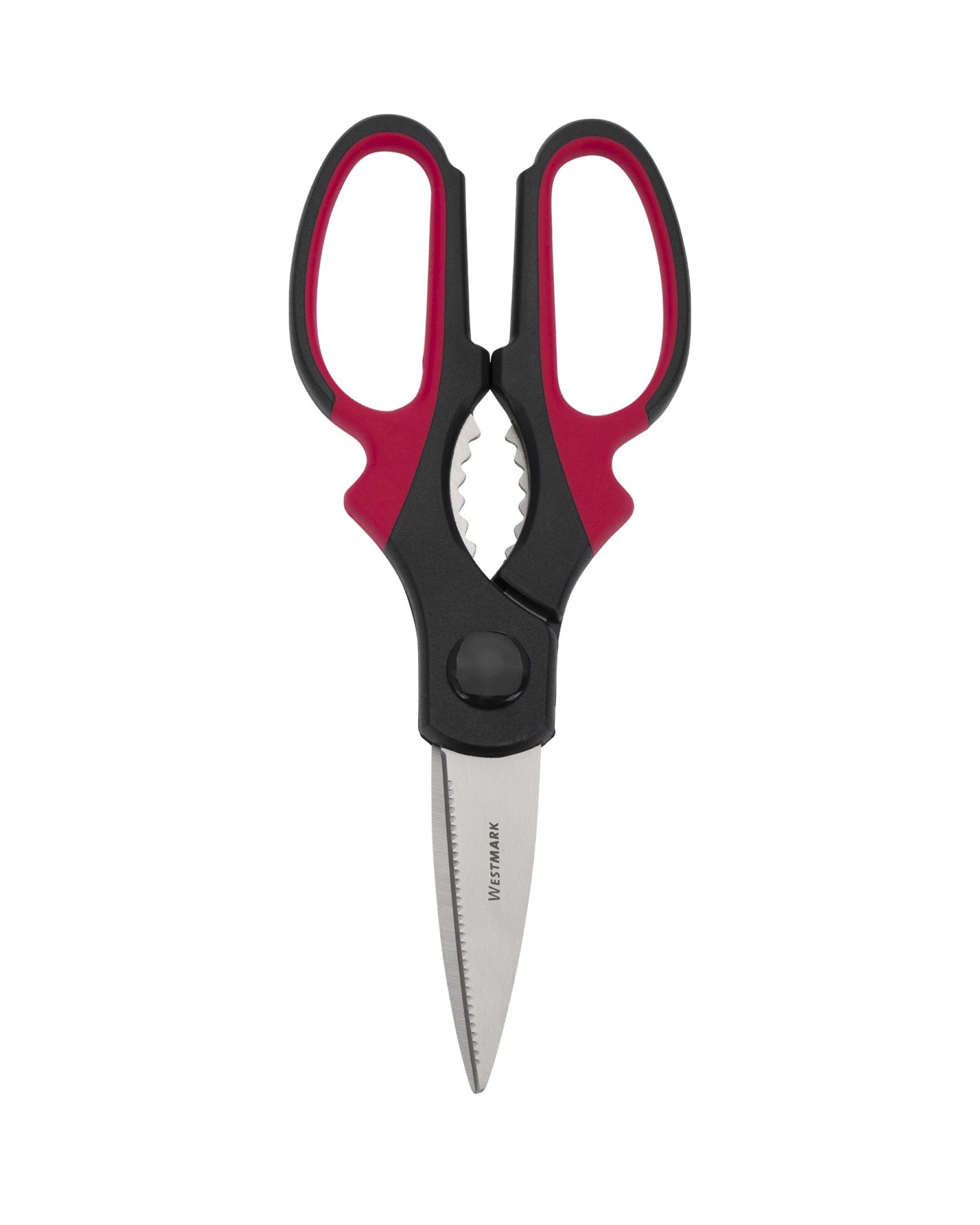 All purpose household scissors, 21 cm ? comfortable, easy to hold handles enable secure handling ? with serrated opening element for screw caps| Effortless and quick opening The functional household scissors effortlessly cut plastic and cardboard into small pieces thanks to their sharp stainless