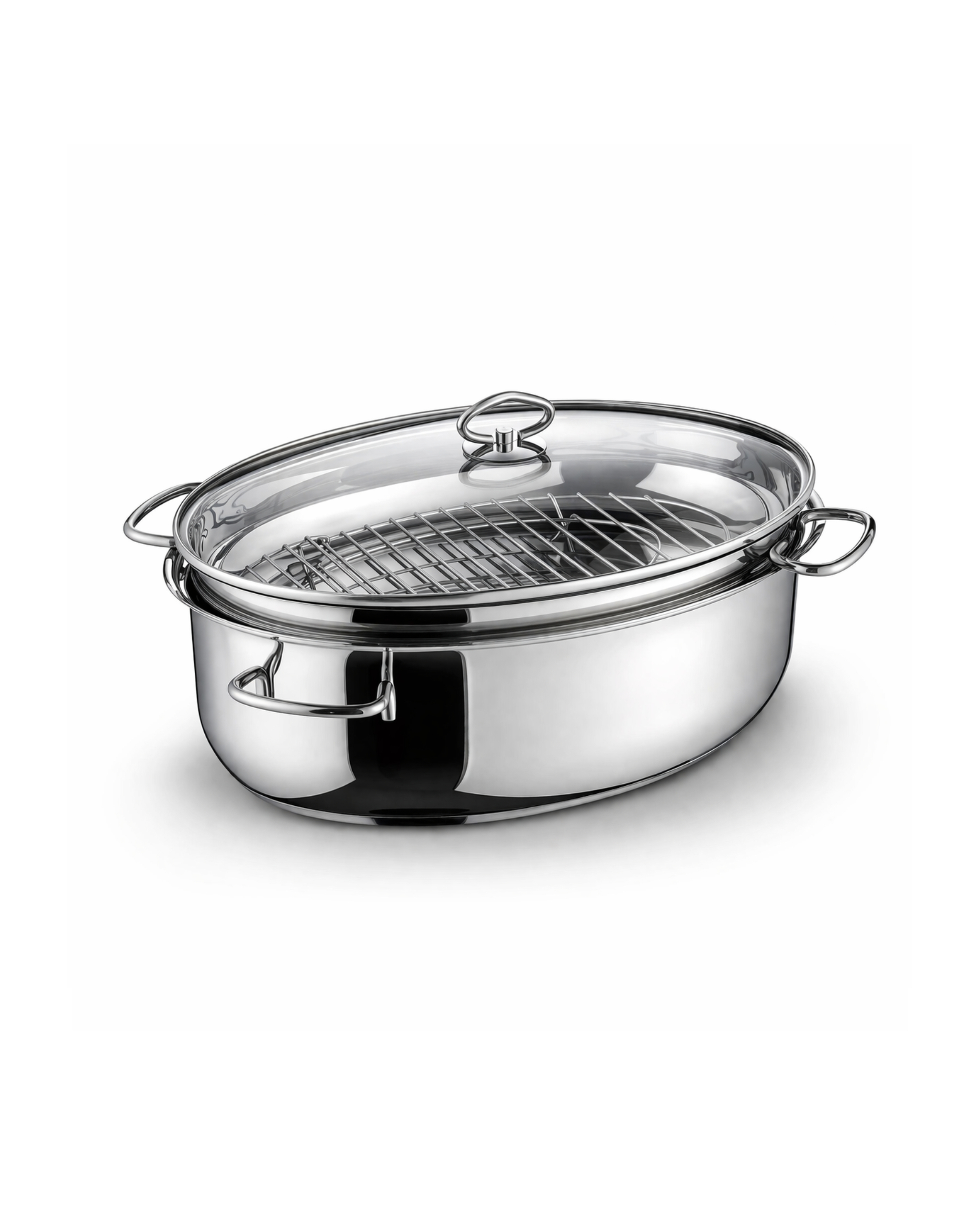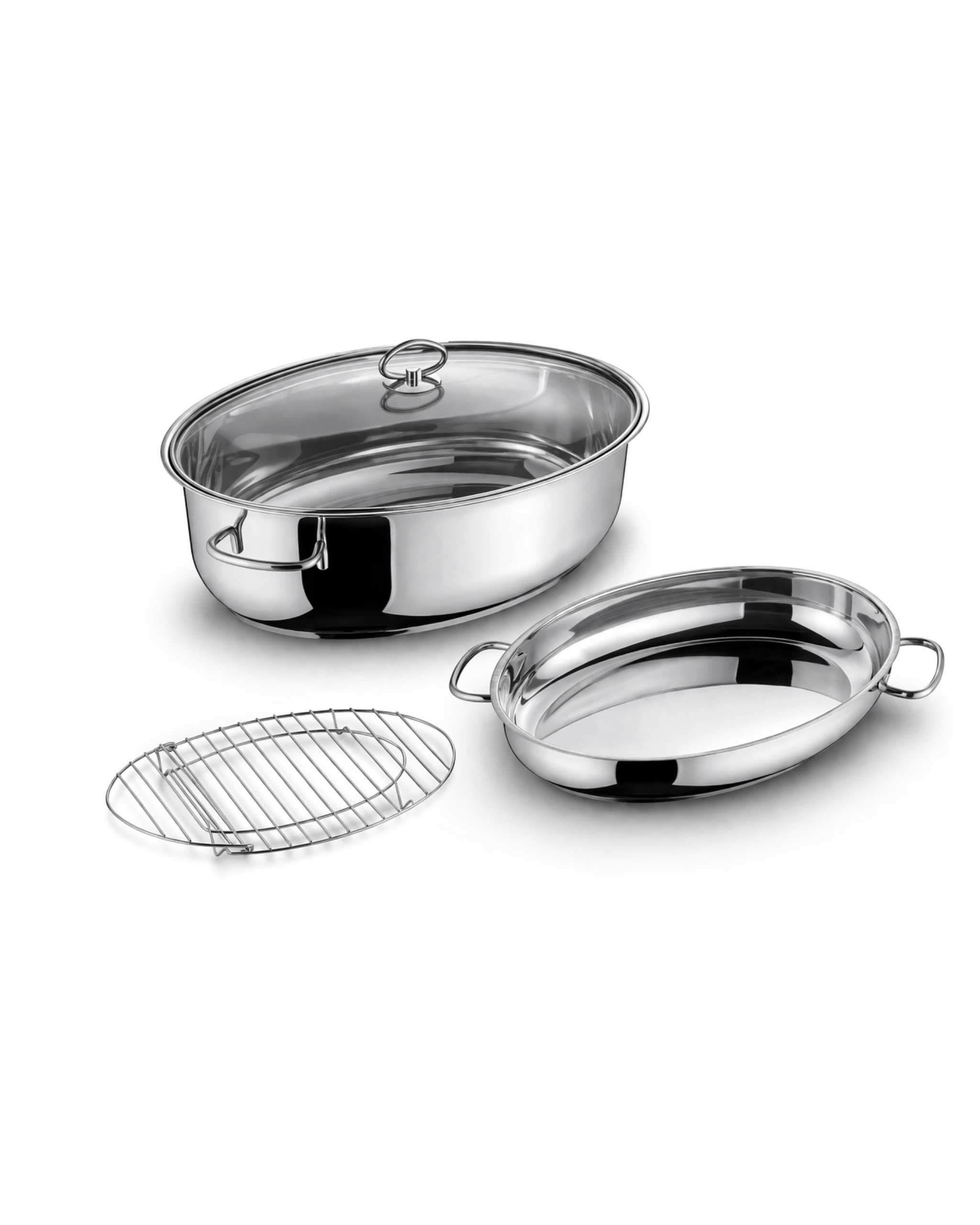 Oval stainless steel roaster, 3-in-1 including glass lid