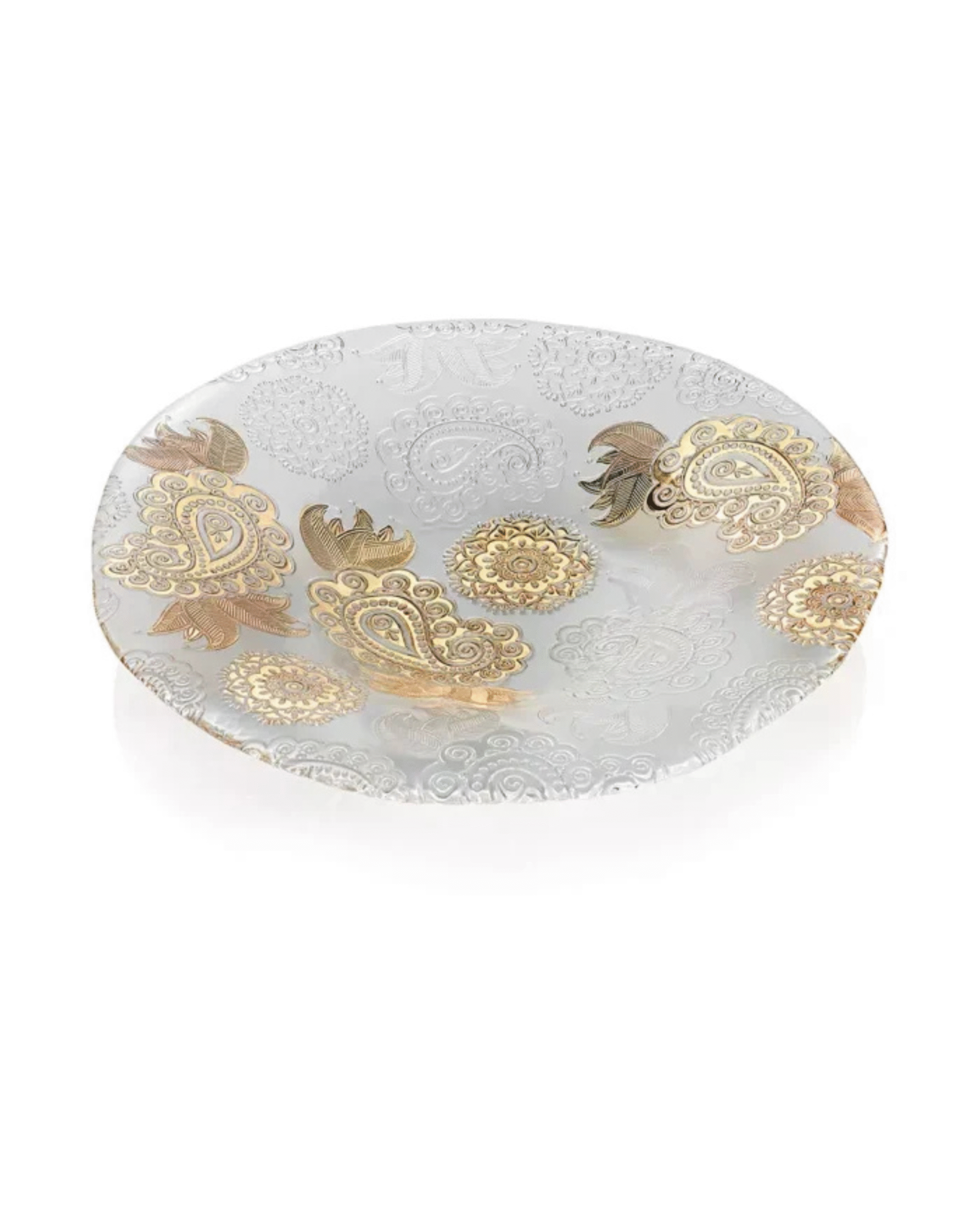 The Pashmina Centerpiece 41 cm Clear with Gold Decoration is a refined decorative piece designed to elevate any table or interior space. Crafted from clear glass and enhanced with elegant gold details, it creates a luxurious focal point perfect for dining tables, coffee tables, or special occasions. Its generous size and sophisticated design make it both decorative and functional for serving or display.