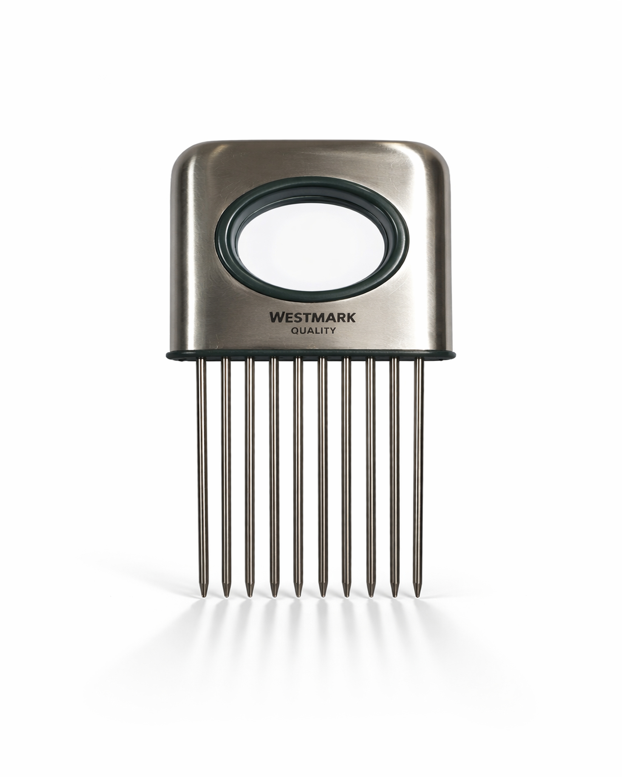 Slicing aid ? helps to protect the fingers from injuries ? for holding roast meat, onions etc. whilst slicing ? 10 sharp stainless steel prongs hold the food| Safe slicing with Westmark ? Leftover holder and cutting aid Safety comes first and that’s exactly what this practical leftover holder